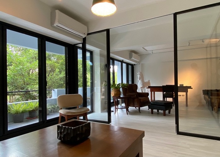 ▲光線由外穿透玻璃進(jìn)入室內(nèi),整體視覺化通透明亮,破除隔間限定,使視覺坪效再放大。