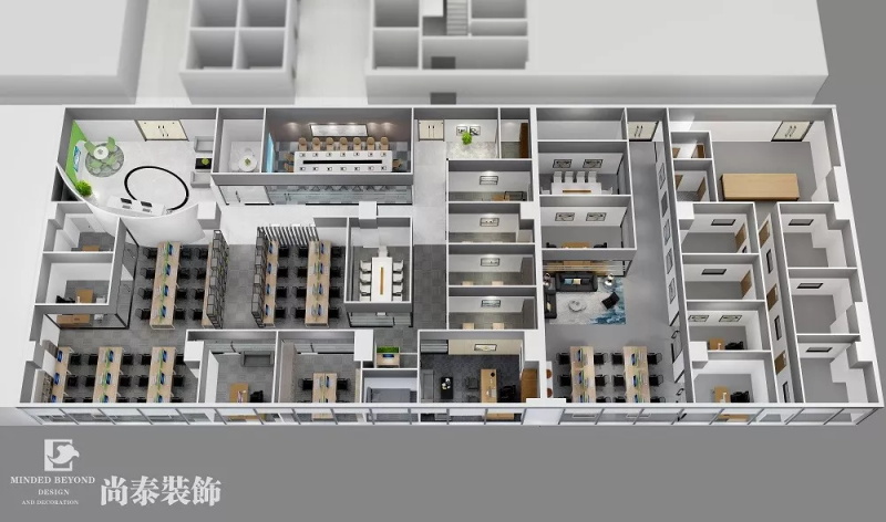 體現(xiàn)了建筑空間原有的美感,整體線條流暢,充分研究辦公空間動線,分析人員辦公行為模式,