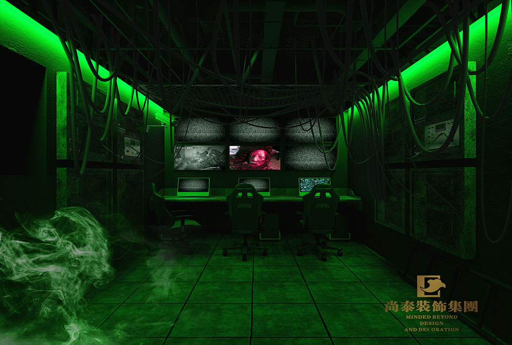 本方案中深圳裝修公司尚泰裝飾設計師將隱秘的綠光,作為密室逃脫空間的重要媒介,完全貫穿了該空間的始末。