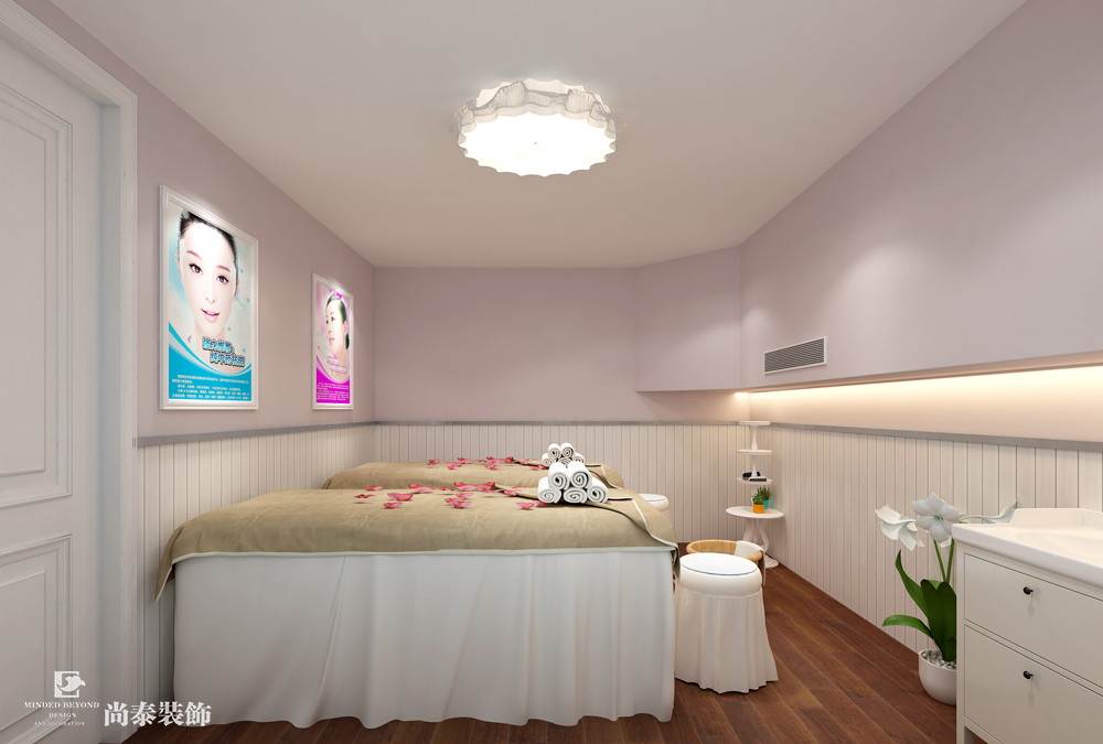 以淡雅的墻面顏色結(jié)合柔和的燈光處理